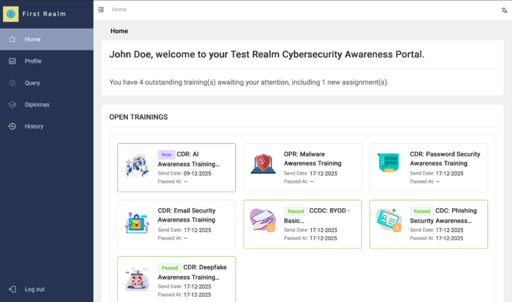 The User Portal home page now displays pending and newly assigned trainings. Enabling Users to start the Training from the User Portal. This ensures users have immediate visibility of pending actions and improves training completion rates.