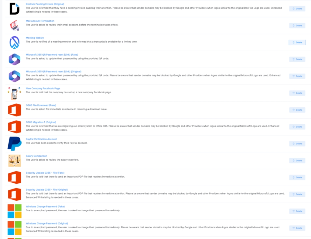 The following templates are included in the free phishing & training software CYBERDISE Freemium for download (2026). Please note that you can easily adapt these templates to your needs before launching a phishing campaign. You can even use the website cloner included in this edition to quickly create your own phishing simulation templates! Here is the list of free phishing templates: