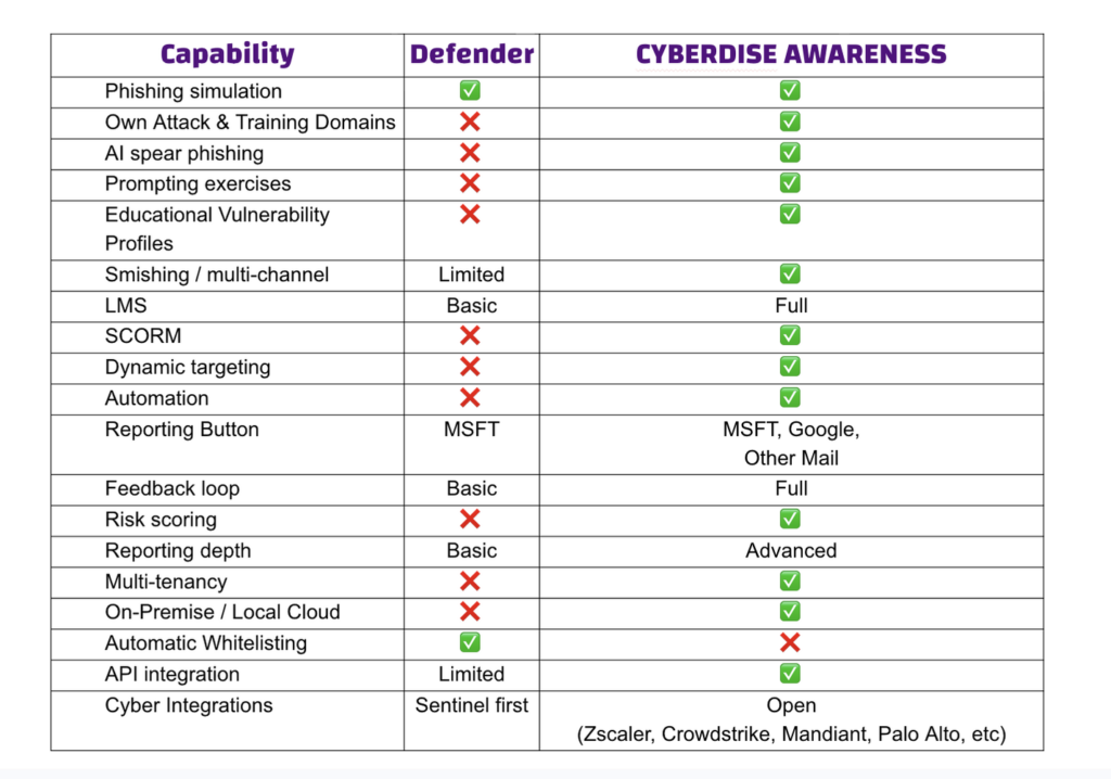 MSFT Attack Simulator VS CYBERDISE - comparison table